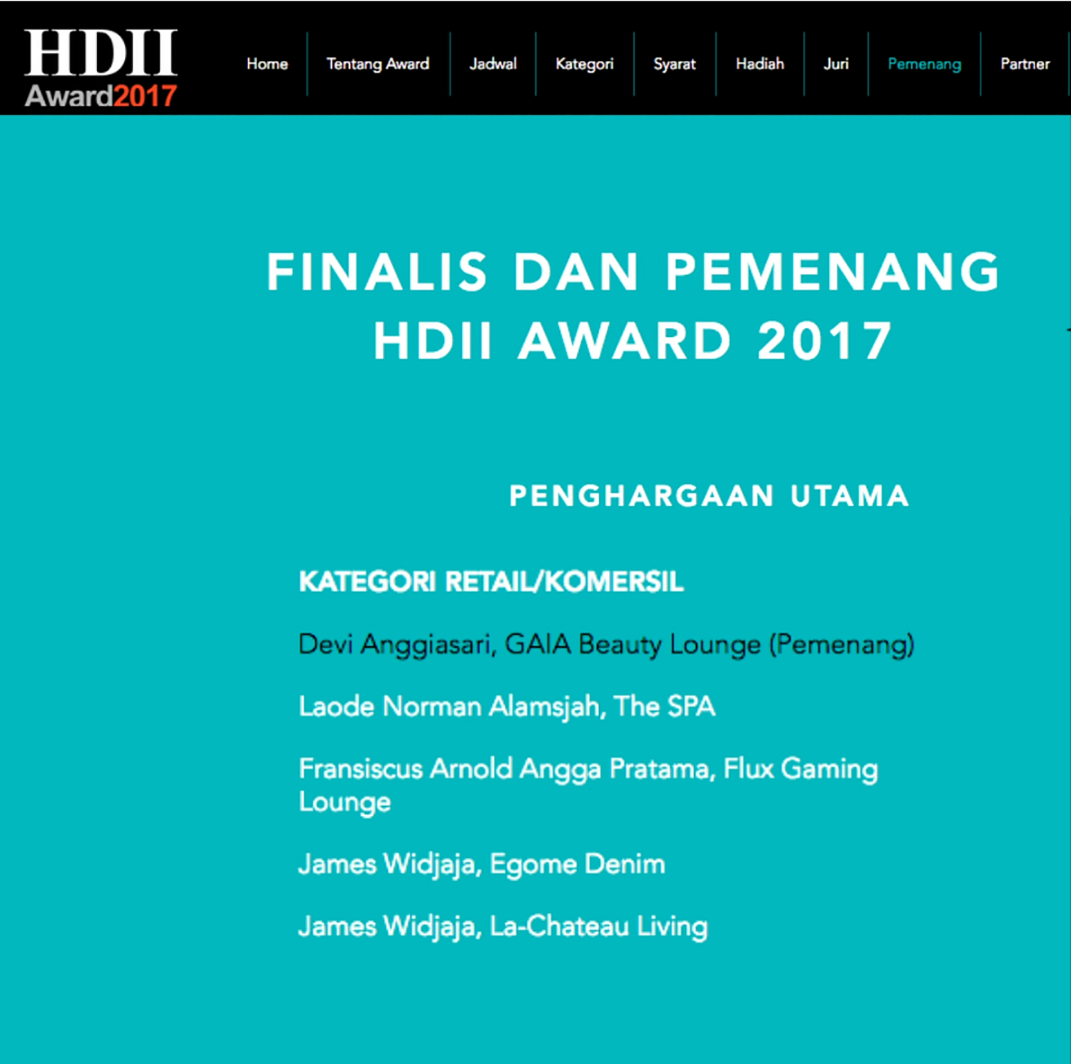 HDII AWARD 2017 – Kategori Retail/Komersil : GAIA Beauty Lounge